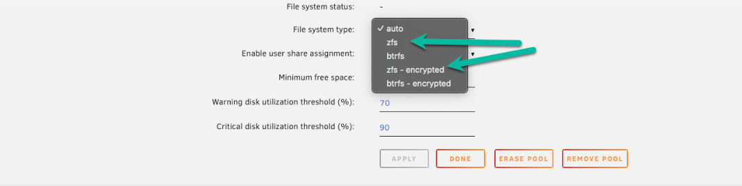 - 设置文件系统为 "Auto": 点击池名称(例如,